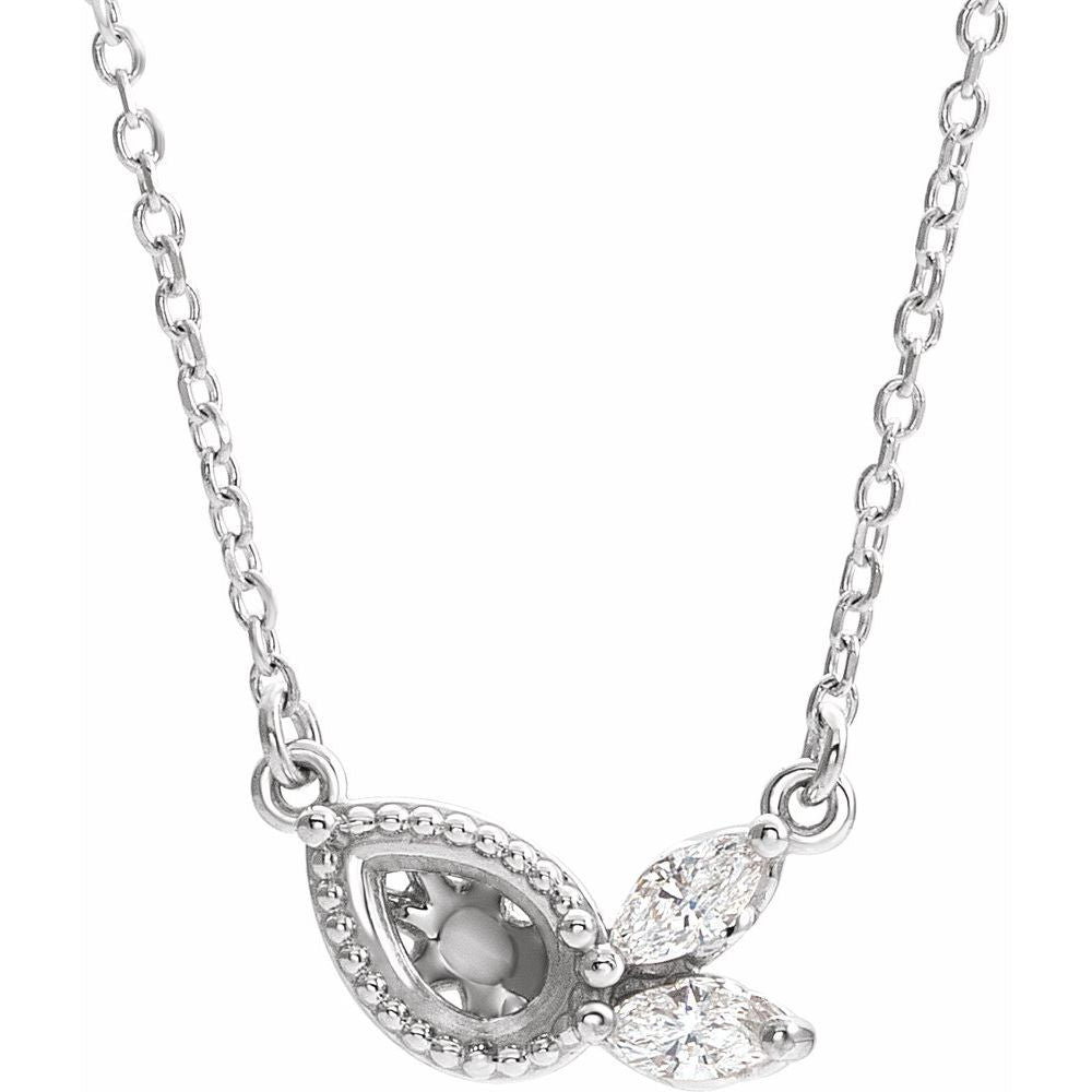 Platinum Pear Shape Diamond Semi-Set Necklace (Mounting Only, Not All stones Included, 1/6 cttw, G-H, SI2-SI3, 13x7.2mm), 16"