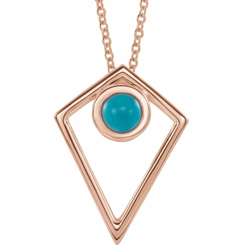 14k Rose Gold Round Shape Turquoise Cabochon Pyramid Necklace (19.98x14.82mm), 24"