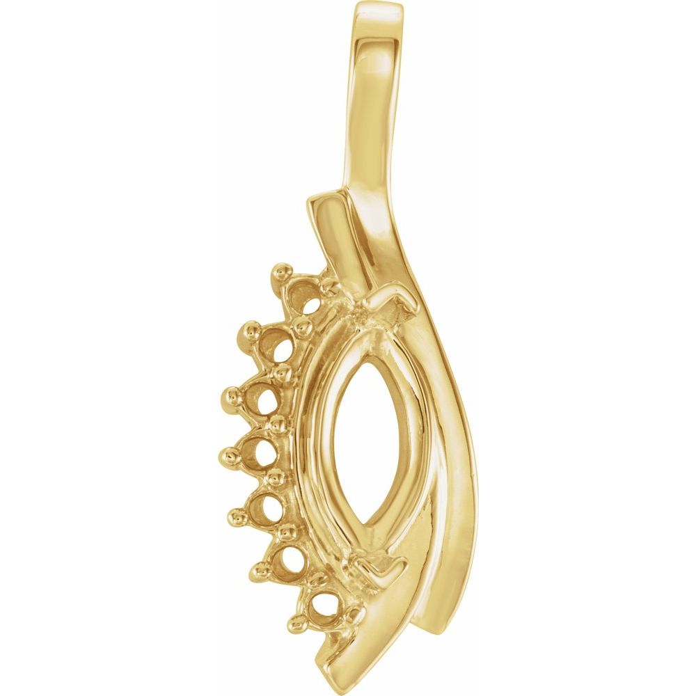 14k Yellow Gold 10x5mm Marquise Shape Freeform Pendant for Approximately 1 1/8 cttw (Mounting Only, Not All Stones Included, 25x1mm)