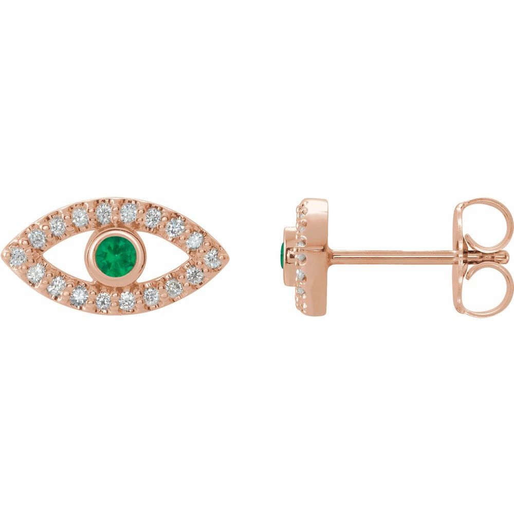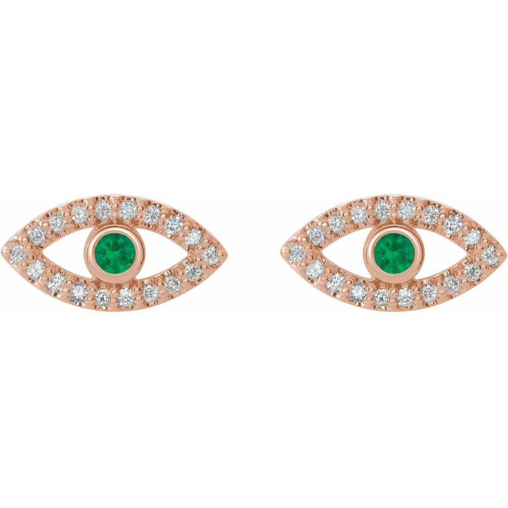 14k Rose Gold Emerald and White Sapphire Religious Earrings