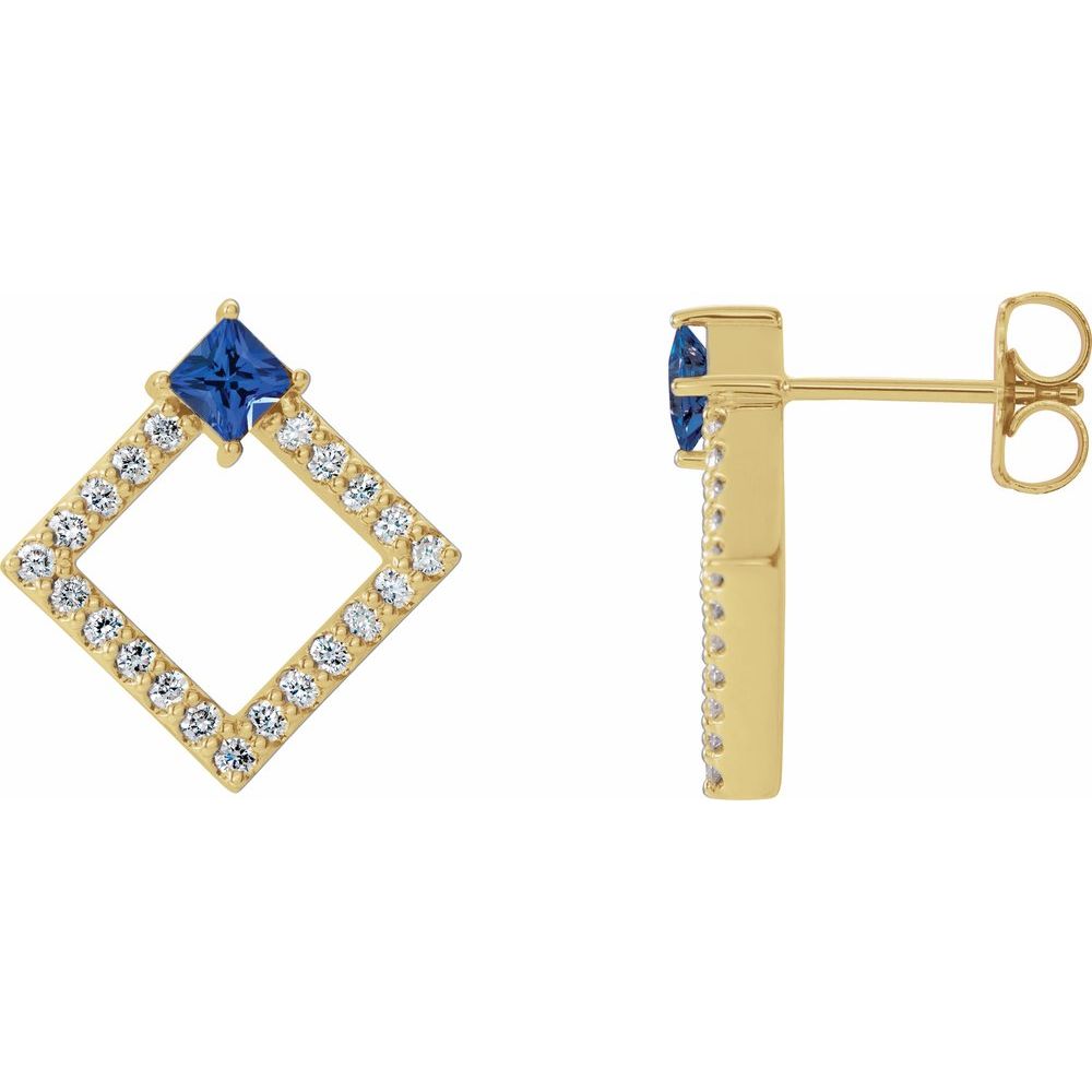 Description: Genuine Blue Sapphire And 1/3 cttw Diamond Earrings