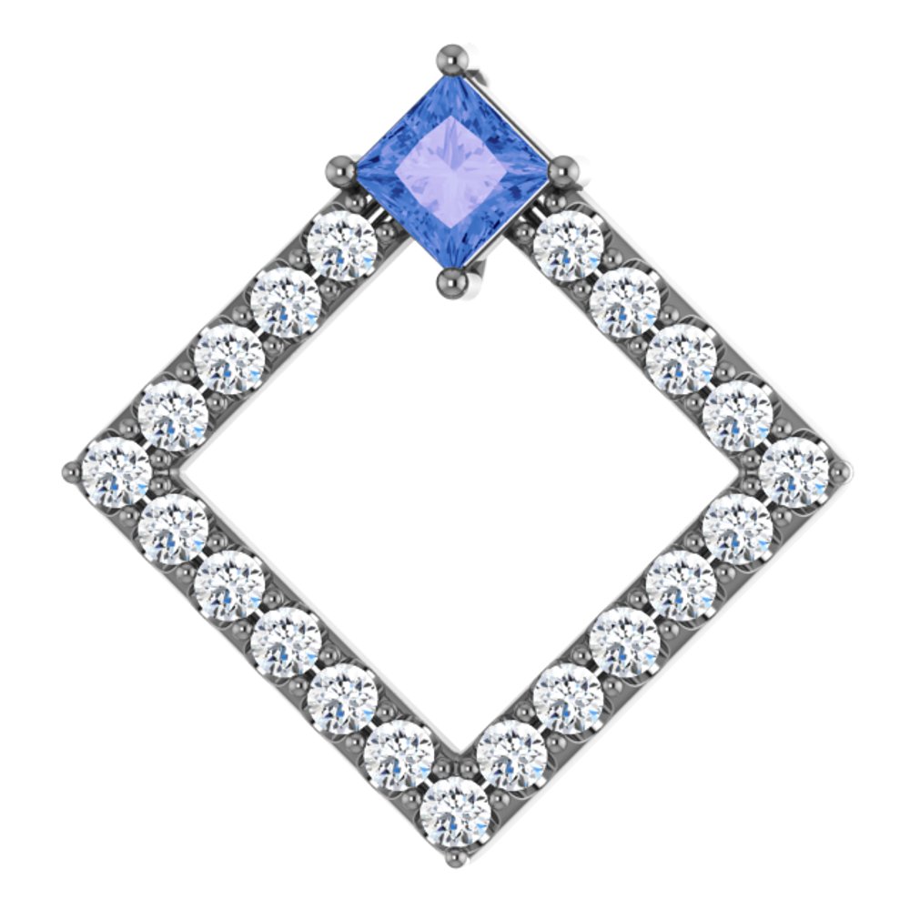 Sterling Silver Square Shape Tanzanite and 3/8 cttw Diamond Pendant (G-H, I1, 19.62mm)