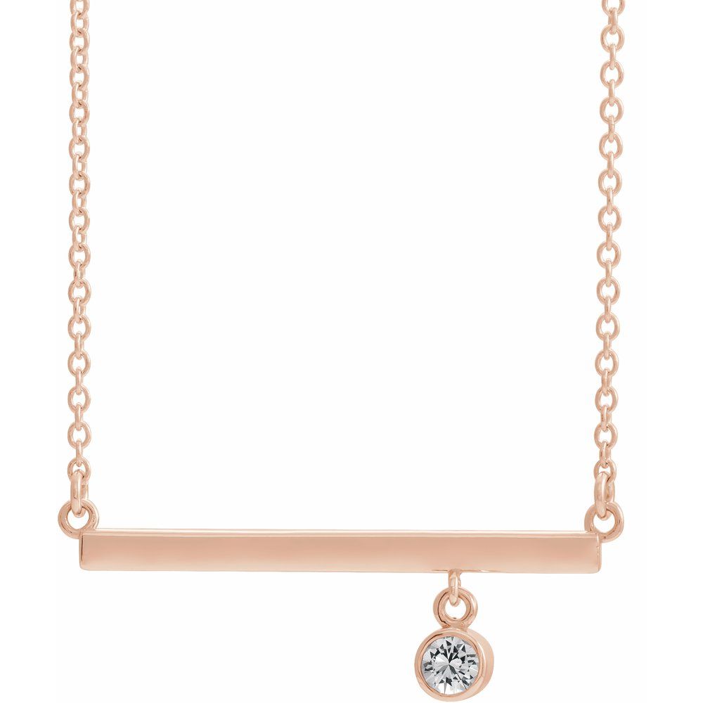 14k Rose Gold Round Shape Diamond Bezel-Set Bar Necklace (27.3x5.2mm), 18"
