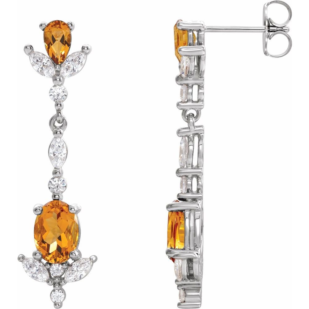 Platinum Citrine and 3/4 cttw Diamond Drop Dangle Earrings (G-H, SI2-SI3)