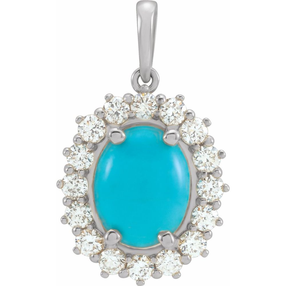 14k White Gold Oval Shape Turquoise and 1/2 cttw Diamond Cabochon Pendant (21.7x13.41mm, G-H, I1)