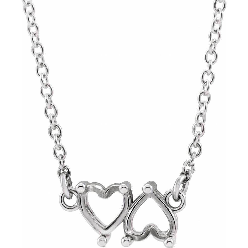Sterling Silver Heart Shape 2 Two-Stone Bar Family Necklace (10.53x5.16mm, Mounting Only, Not All Stones Included), 18"