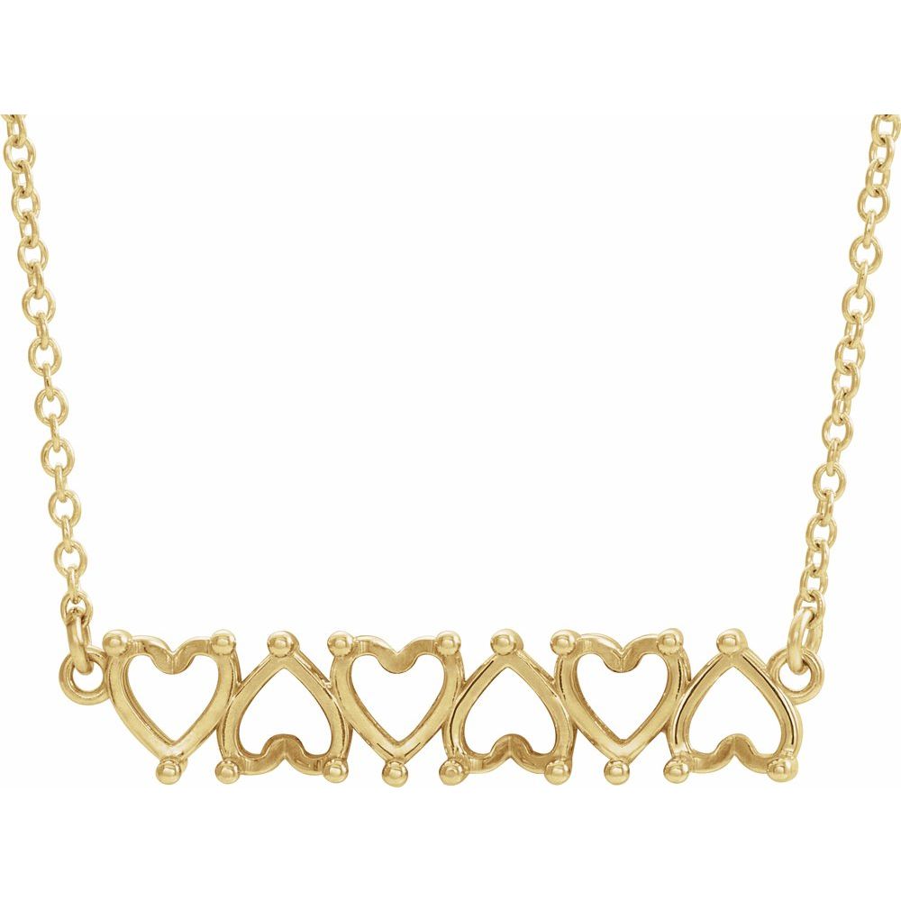 14k Yellow Gold Heart Shape 6 Six-Stone Bar Family Necklace (25.47x5.16mm, Mounting Only, Not All Stones Included), 18"