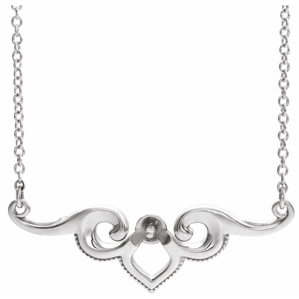 Sterling Silver Vintage-Inspired Necklace For Pearl (28.3x9.5mm, Mounting Only, Not All Stones Included), 16"