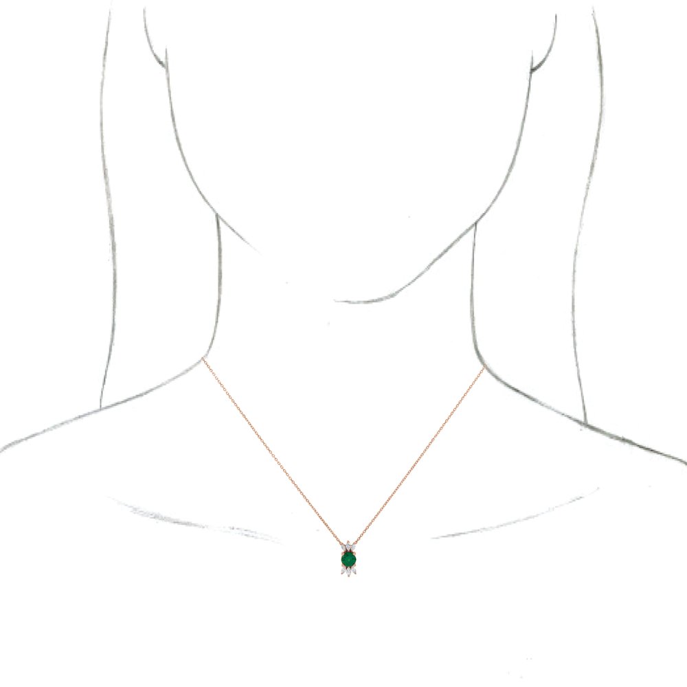 14k Rose Gold Round Shape Lab-Grown Emerald and 1/4 cttw Diamond Necklace (14.8x6.4mm, G-I, I1), 16-18"