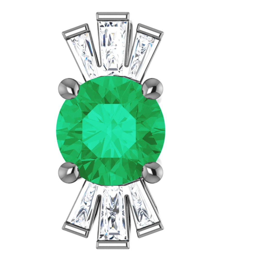 Platinum Round Shape Lab-Grown Emerald and 1/6 cttw Diamond Necklace (13x5.8mm, G-I, SI2-SI3), 16-18"