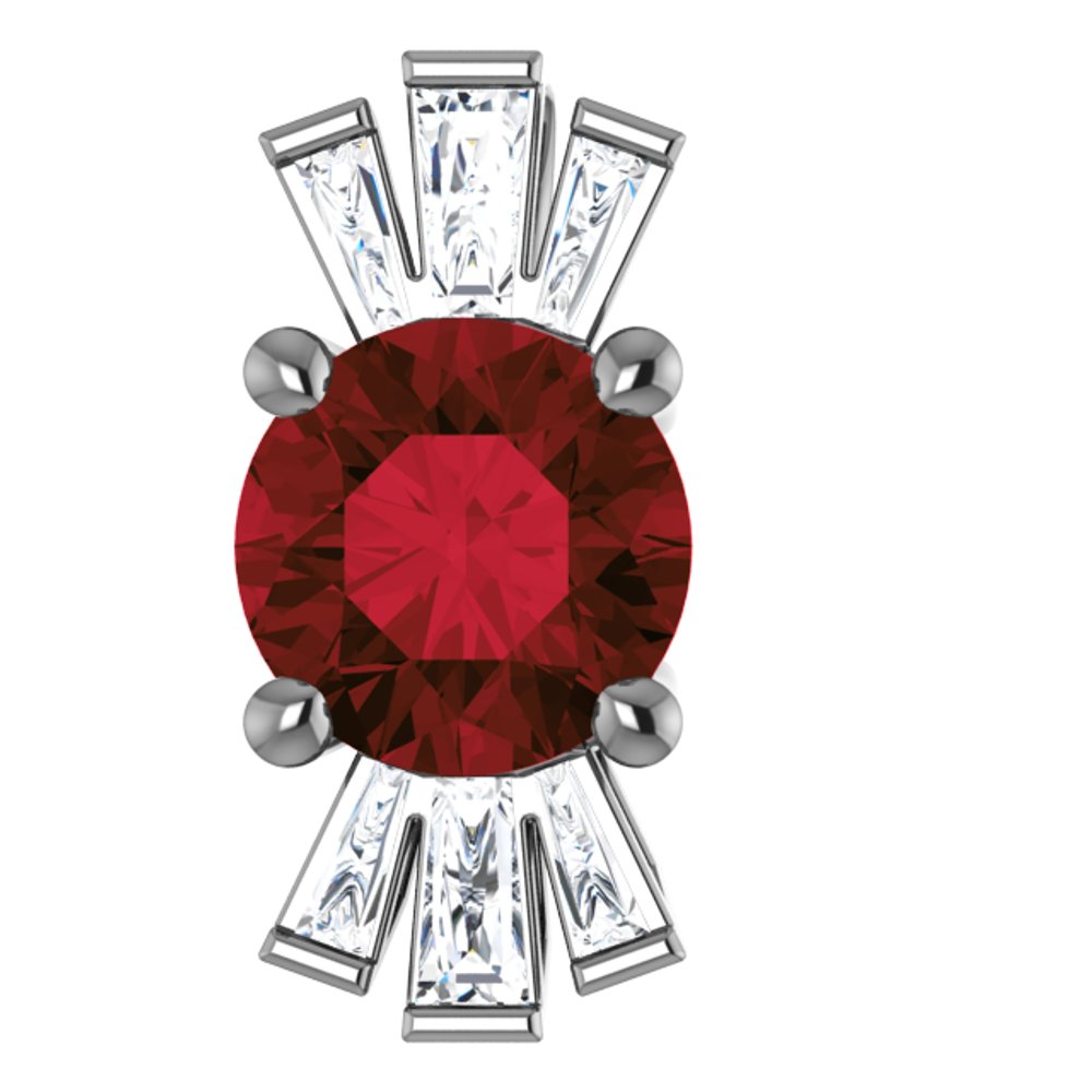 Platinum Round Shape Garnet and 1/6 cttw Diamond Pendant (13x5.8mm, G-I, SI2-SI3)