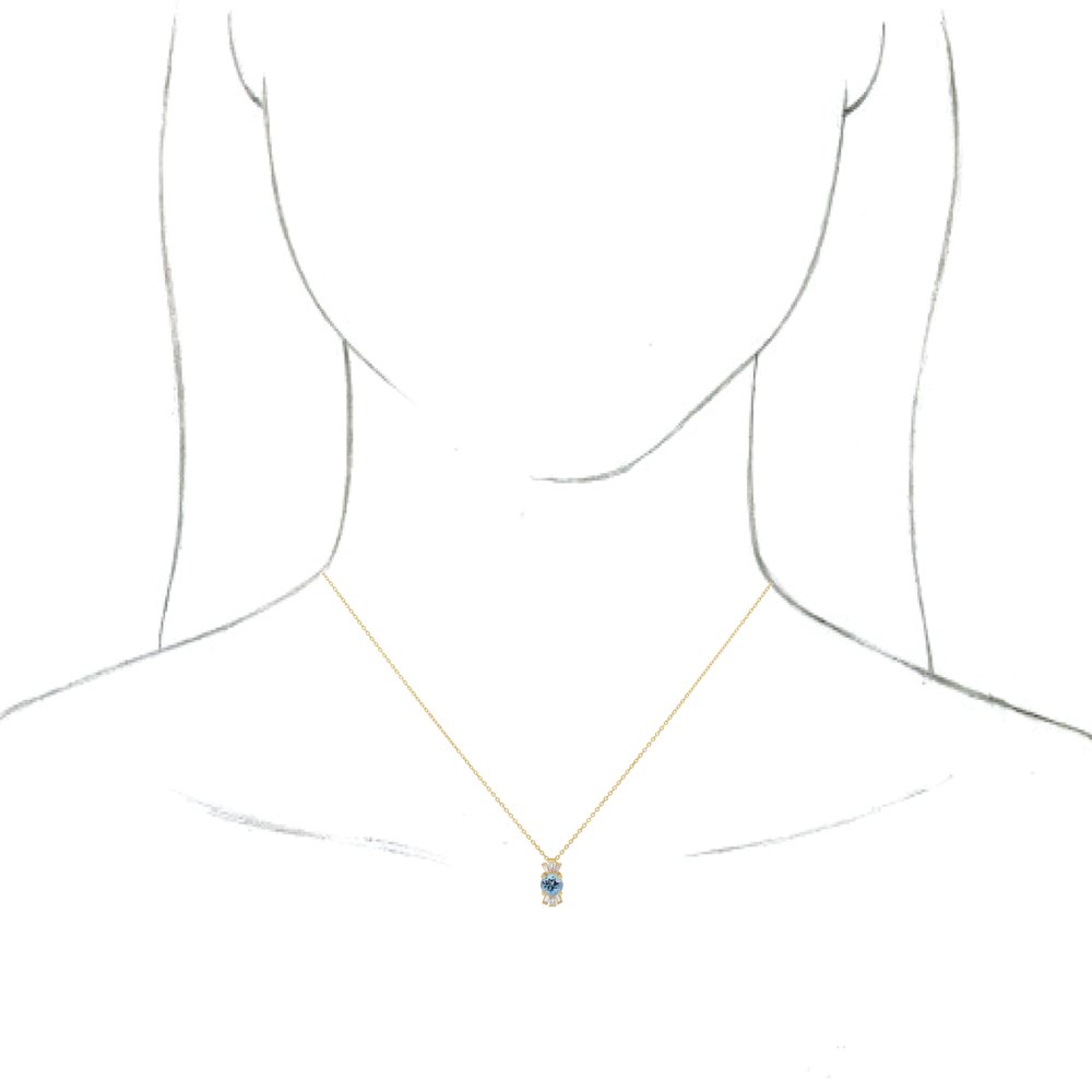 14k Yellow Gold Round Shape Aquamarine and 1/6 cttw Diamond Necklace (13x5.8mm, G-I, SI2-SI3), 16-18"