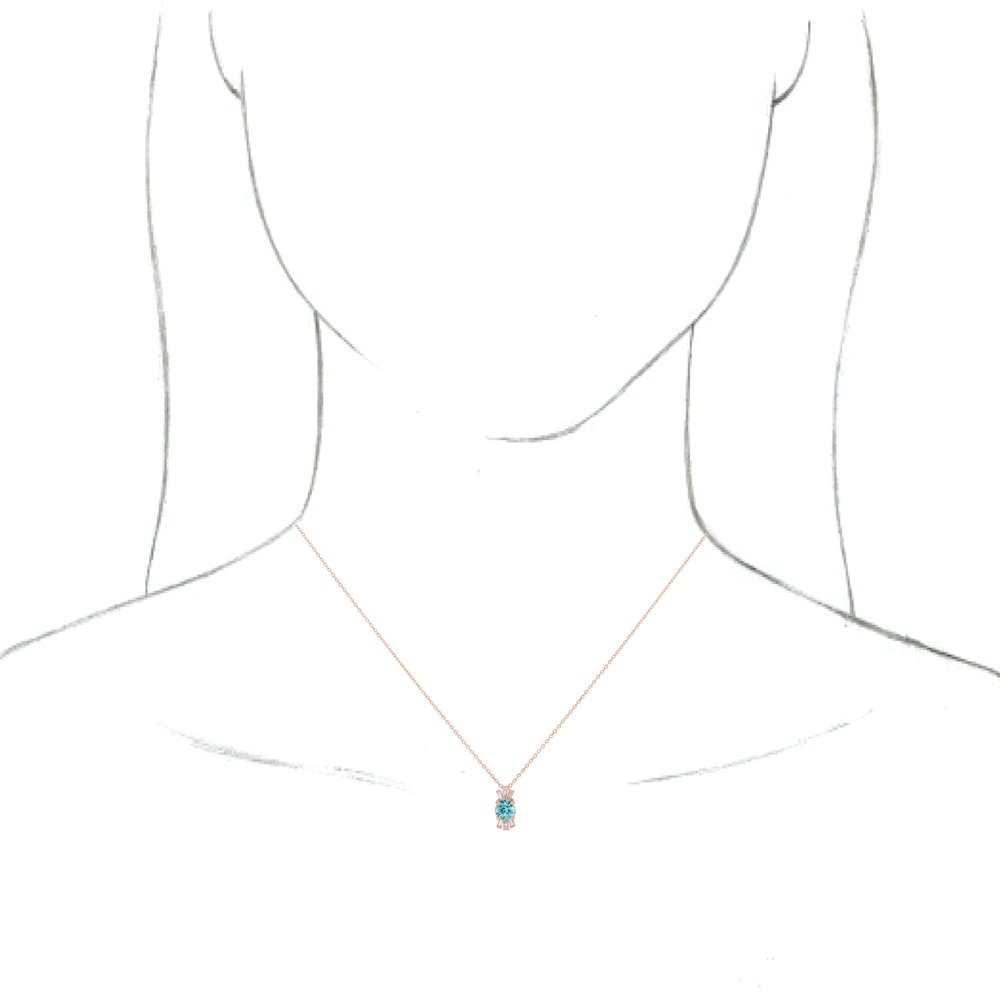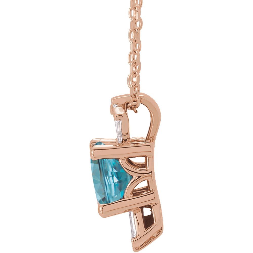 14k Rose Gold Round Shape Blue Zircon and 1/6 cttw Diamond Necklace (13x5.8mm, G-I, SI2-SI3), 16-18"