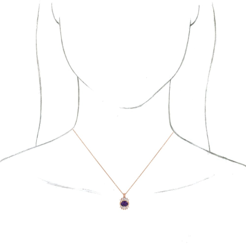 14k Rose Gold Oval Shape Amethyst and 1/3 cttw Diamond Halo-Style Necklace (16.1x9.3mm, G-H, I1), 16-18"