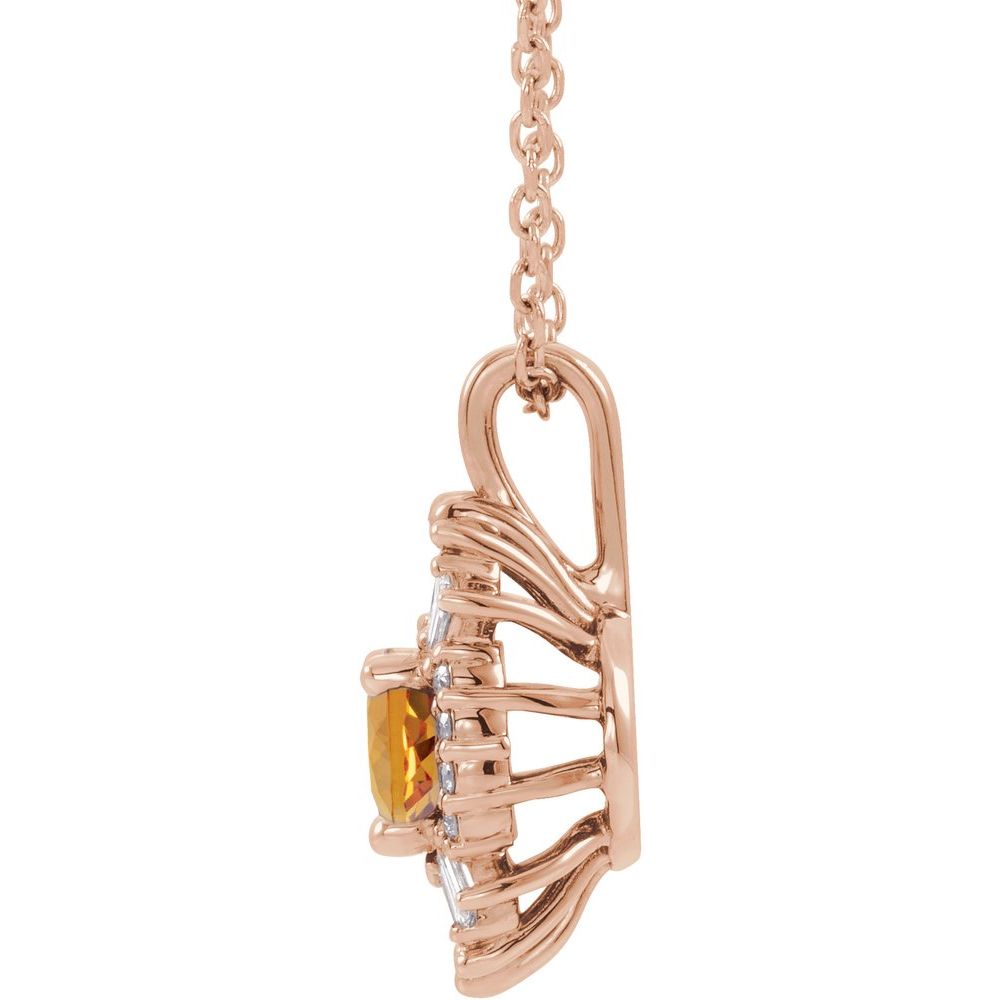 Description: 14k Rose Gold Citrine and 1/3 cttw Diamond 16-18" Necklace