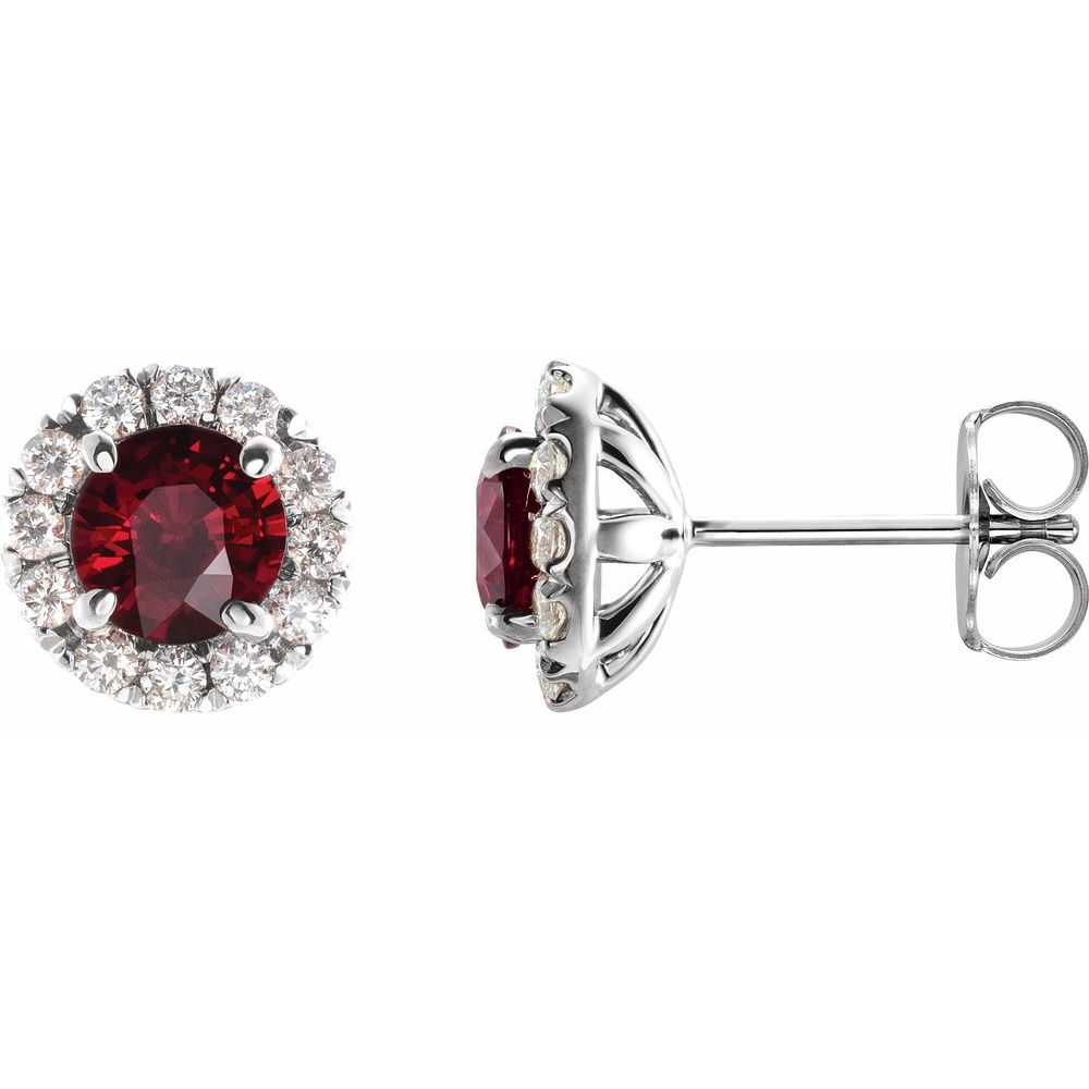 Description: Lab-Created Ruby And 1/5 cttw Diamond Earrings