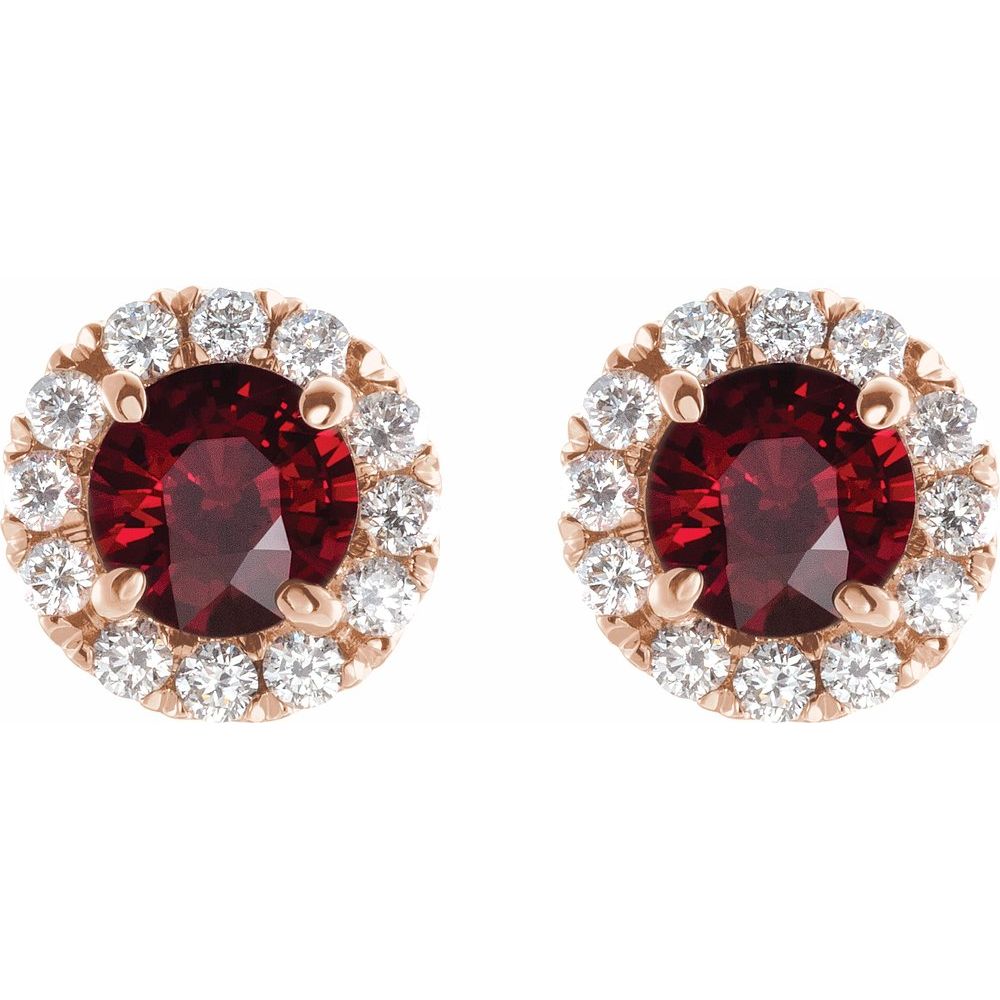 14k Rose Gold Ruby and 1/3 cttw Diamond Halo-Style Earrings (G-H, I1)