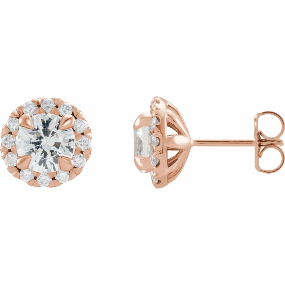 14k Rose Gold Sapphire and 1/3 cttw Diamond Halo-Style Earrings (G-H, I1)