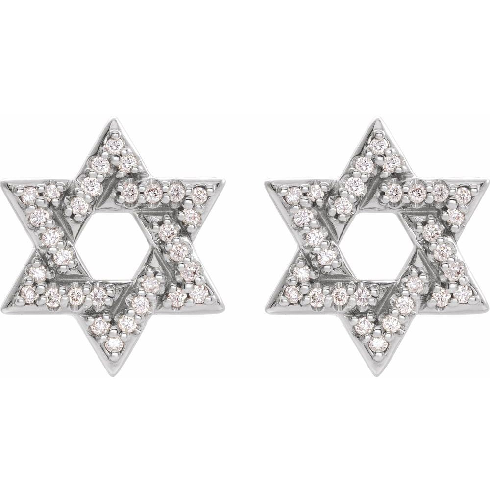 14k White Gold Diamond Star of David Judaica Religious Earrings (1/8 cttw, G-H, I1)