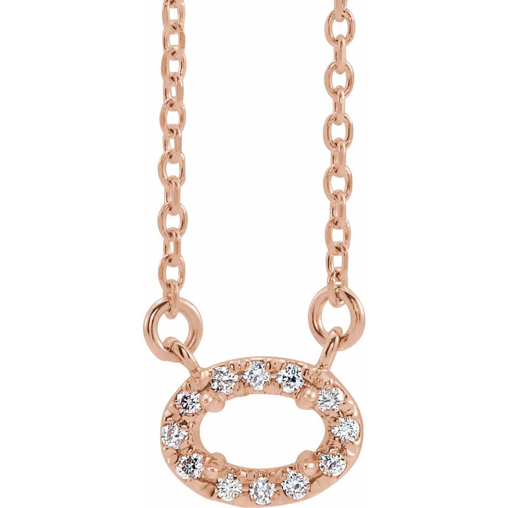 Description: 14k Rose Gold 5x3mm .05 cttw Diamond Semi-set 16" Necklace