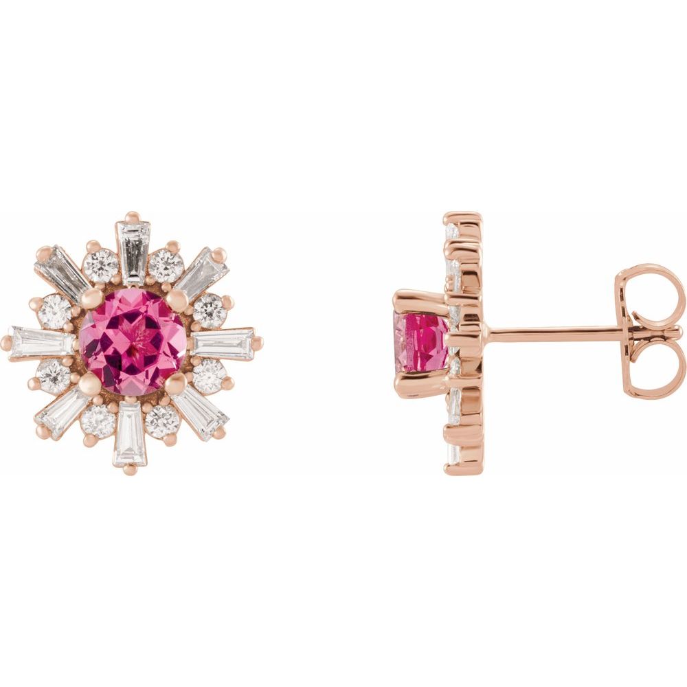 14k Rose Gold Pink Tourmaline and 3/4 cttw Diamond Stud Earrings (G-I, SI2-SI3, I1)