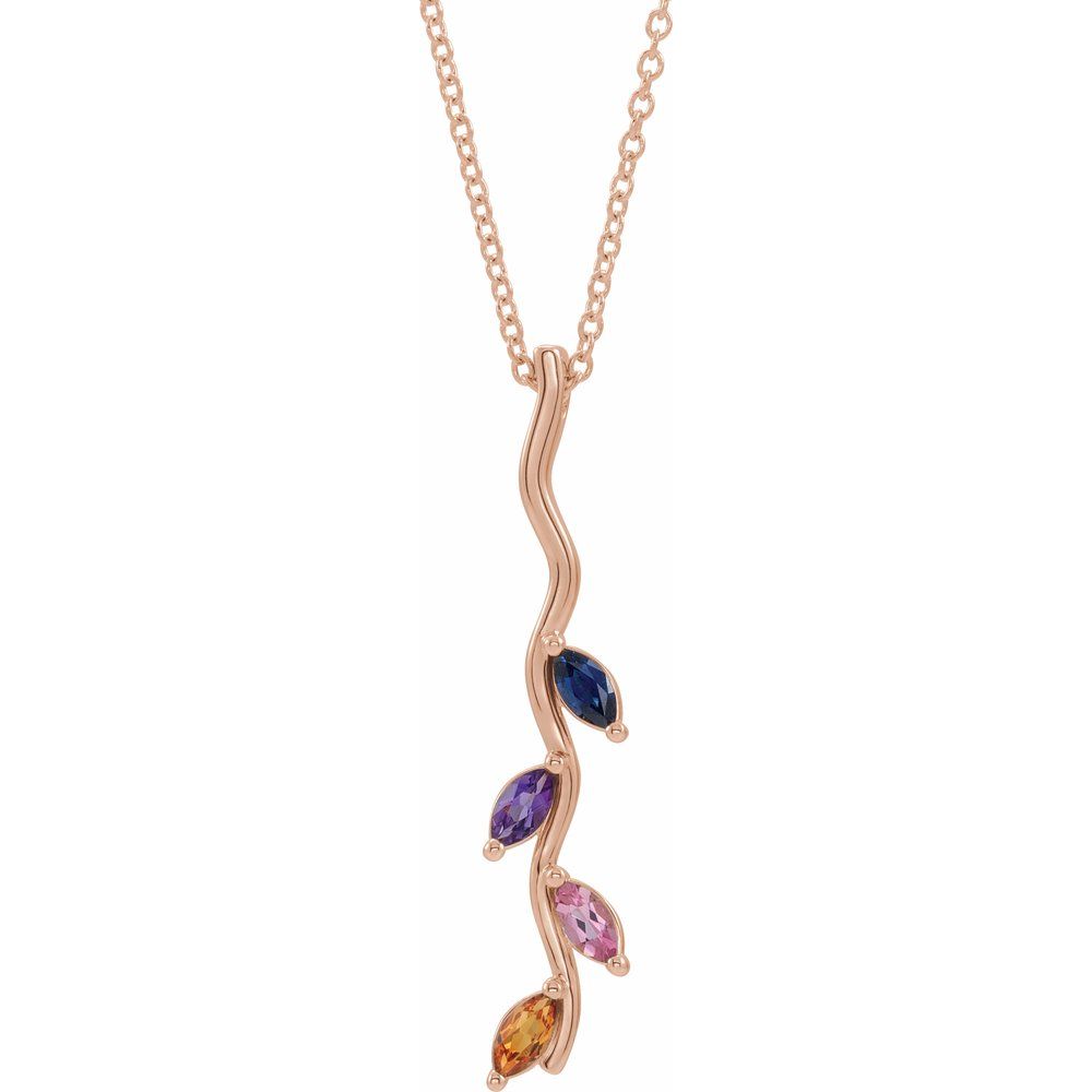 14k Rose Gold Marquise Shape 4-StoneScattered Bar Family Necklace for Approximately 1/3 cttw (30.77x6.25mm, Mounting Only, Not All Stones Included), 16-18"