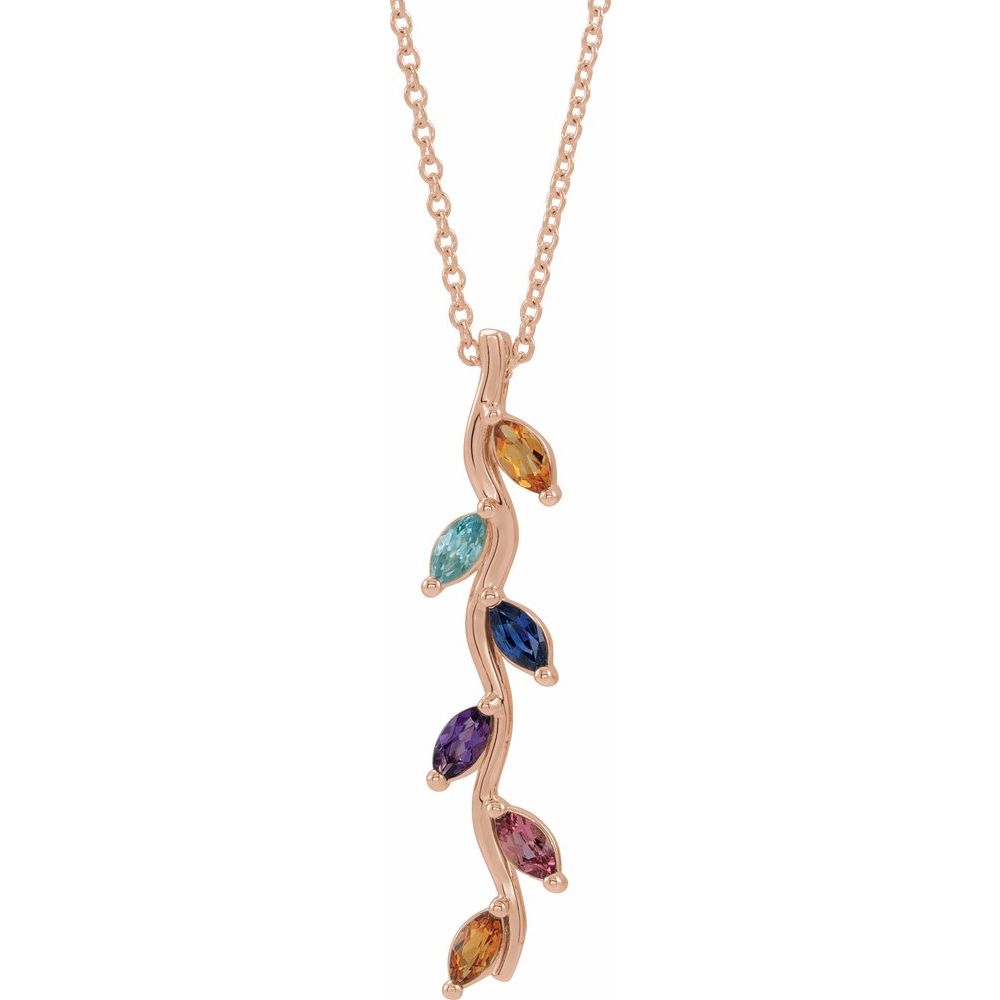 14k Rose Gold Marquise Shape 6 Six-Stone Scattered Bar Family Necklace for Approximately 1/2 cttw (30.77x6.51mm, Mounting Only, Not All Stones Included), 16-18"
