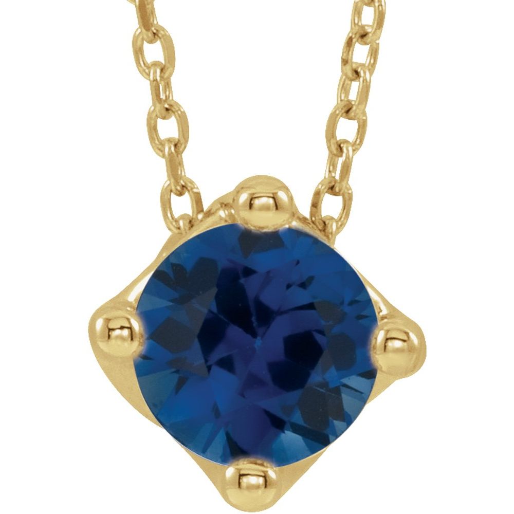 Description: 14k Yellow Gold 5mm Round Lab-Grown Blue Sapphire Solitaire 16-18" Necklace