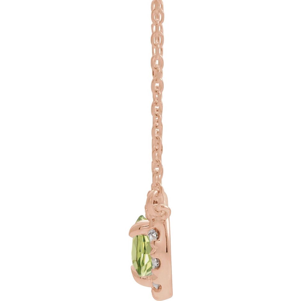 Description: 14k Rose Gold 5x3mm Pear Peridot and 1/8 cttw Diamond 16" Necklace