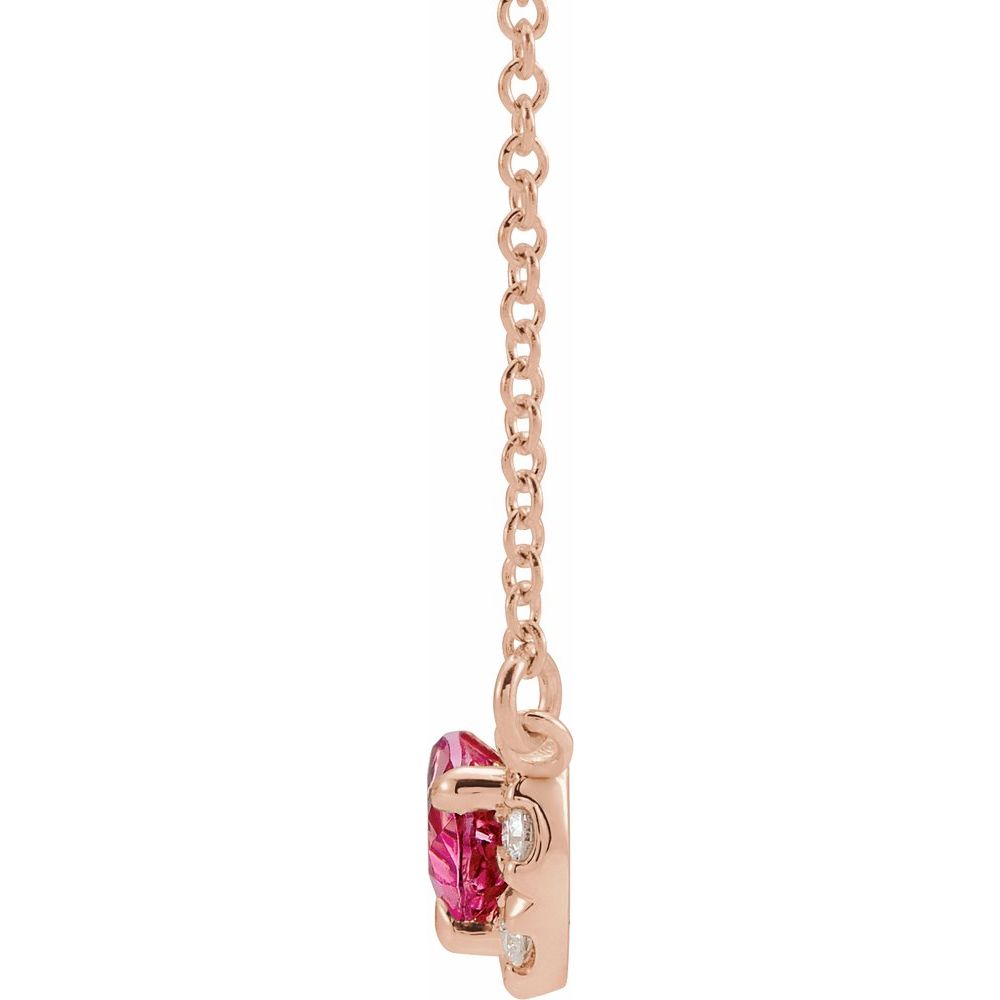 Description: 14k Rose Gold 5x3mm Pear Pink Tourmaline and 1/8 cttw Diamond 16" Necklace
