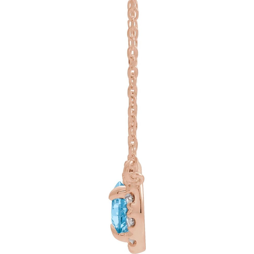 Description: 14k Rose Gold 8x5mm Pear Aquamarine and 1/5 cttw Diamond 18" Necklace