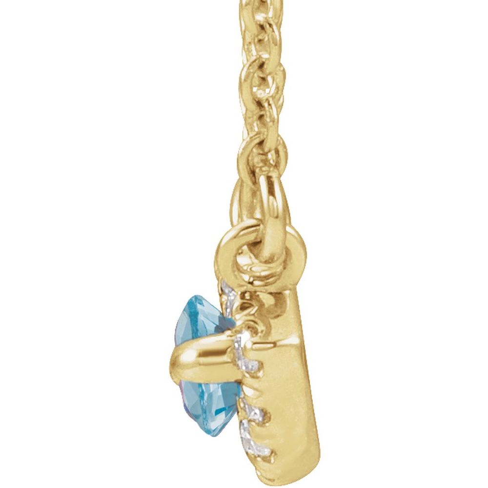Description: 14k Yellow Gold Aquamarine and .05 cttw Diamond Halo-Style 18" Necklace