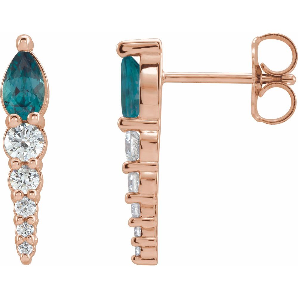 14k Rose Gold Lab-Grown Alexandrite and 1/4 cttw Diamond Drop Dangle Earrings (G-H, I1)