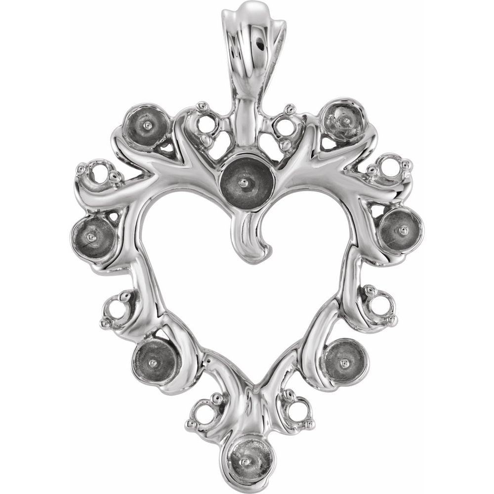 Semi-Polished 14k White Gold Heart Shape Pendant for 3mm Pearls (Mounting Only, Not All Stones Included)