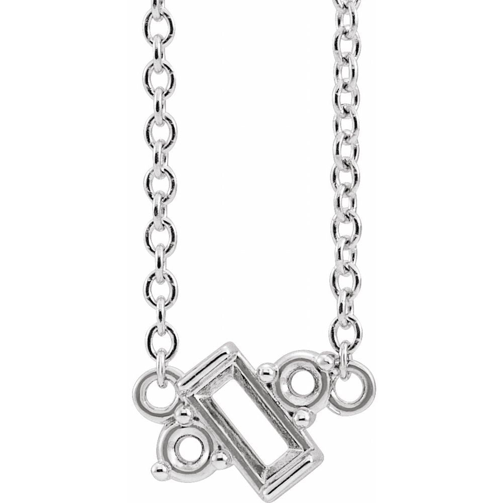 Platinum Straight Baguette Shape 1 One-Stone Bar Family Necklace for Approximately 1/5 cttw (8.24x5.33mm, Mounting Only, Not All Stones Included), 16"