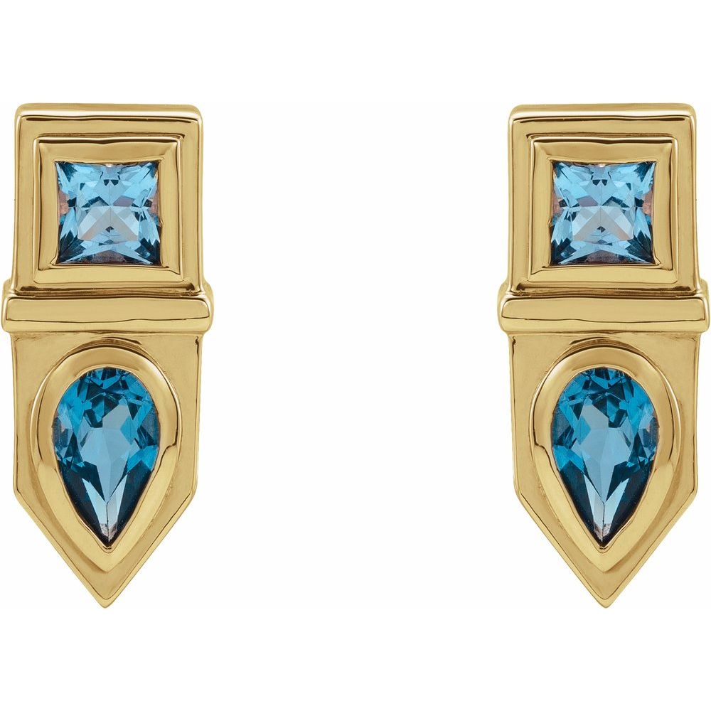 14k Yellow Gold Blue Multi-Gemstone Geometric Bar Drop Dangle Earrings