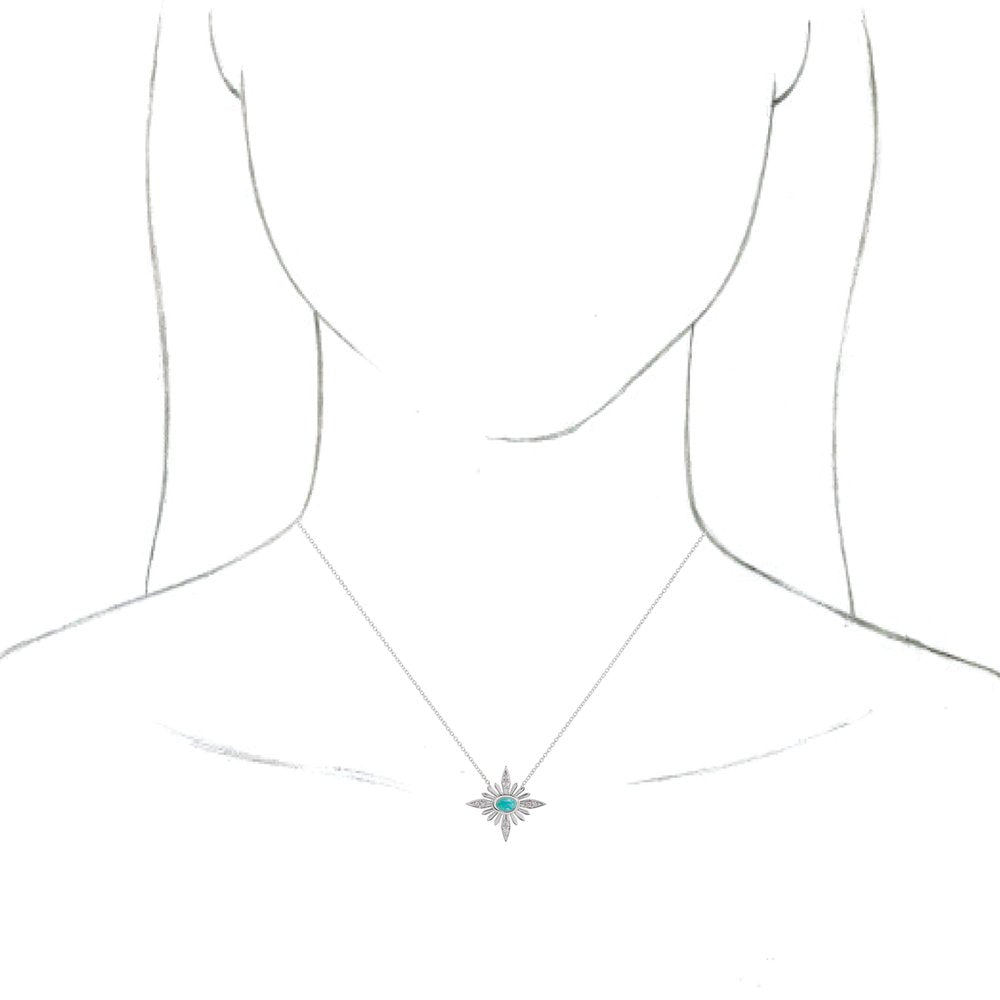 Platinum Oval Shape Turquoise and .08 cttw Diamond Celestial Necklace (21.01x19.64mm, G-H, SI2-SI3), 16-18"