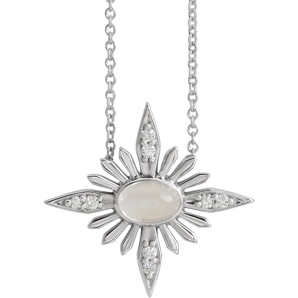 Description: Sterling Silver Rainbow Moonstone and .08 cttw Diamond Celestial 16-18" Necklace