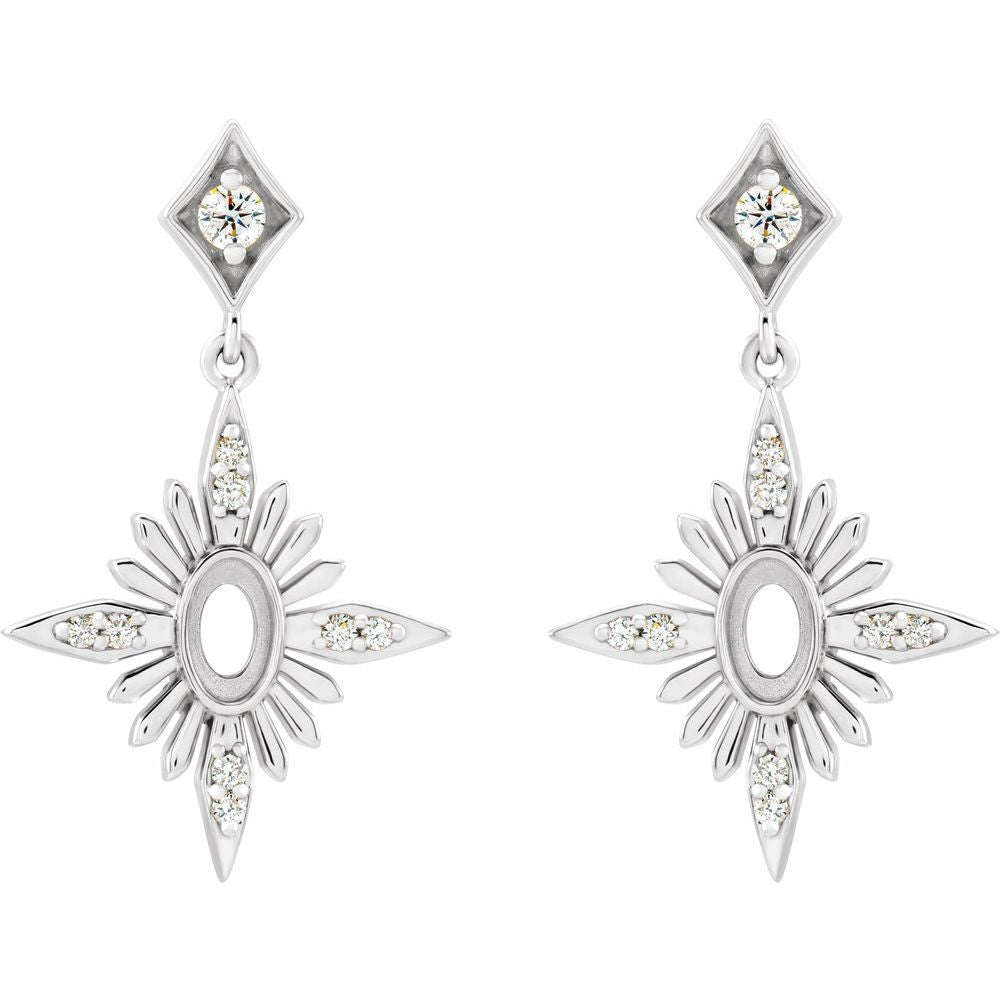Platinum 5x3mm Oval Shape Diamond Semi-Set Celestial Drop Dangle Earrings Mounting (Mounting Only, Not All Stones Included, 1/6 cttw, G-H, SI2-SI3)