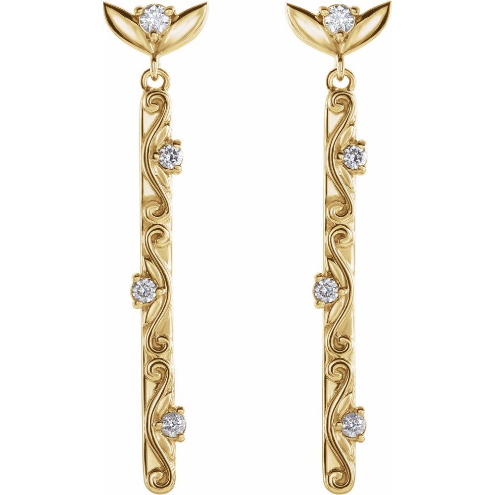 14k Yellow Gold Diamond Vintage-Inspired Drop Dangle Earrings (1/8 cttw, G-H, I1)