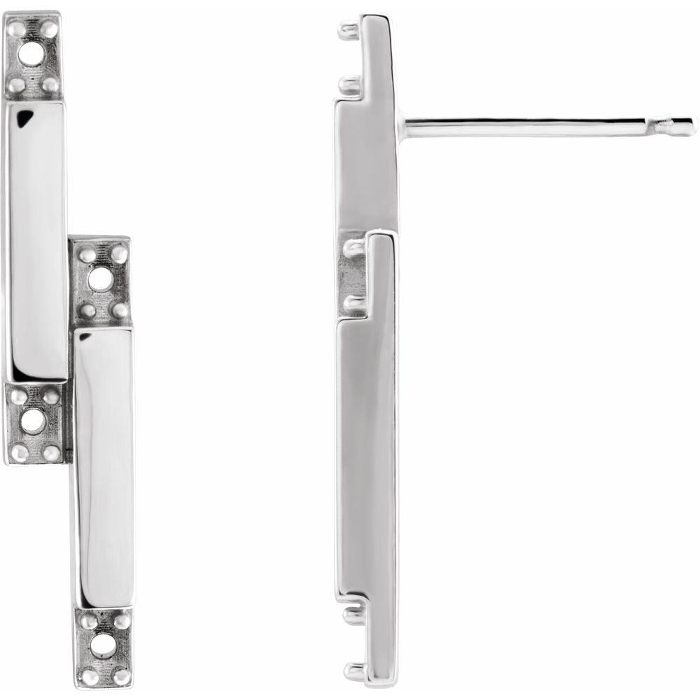 Sterling Silver 1.5mm Round Shape Bar Climber Earrings Mounting (Right Side Mounting Only, Not All Stones Included)