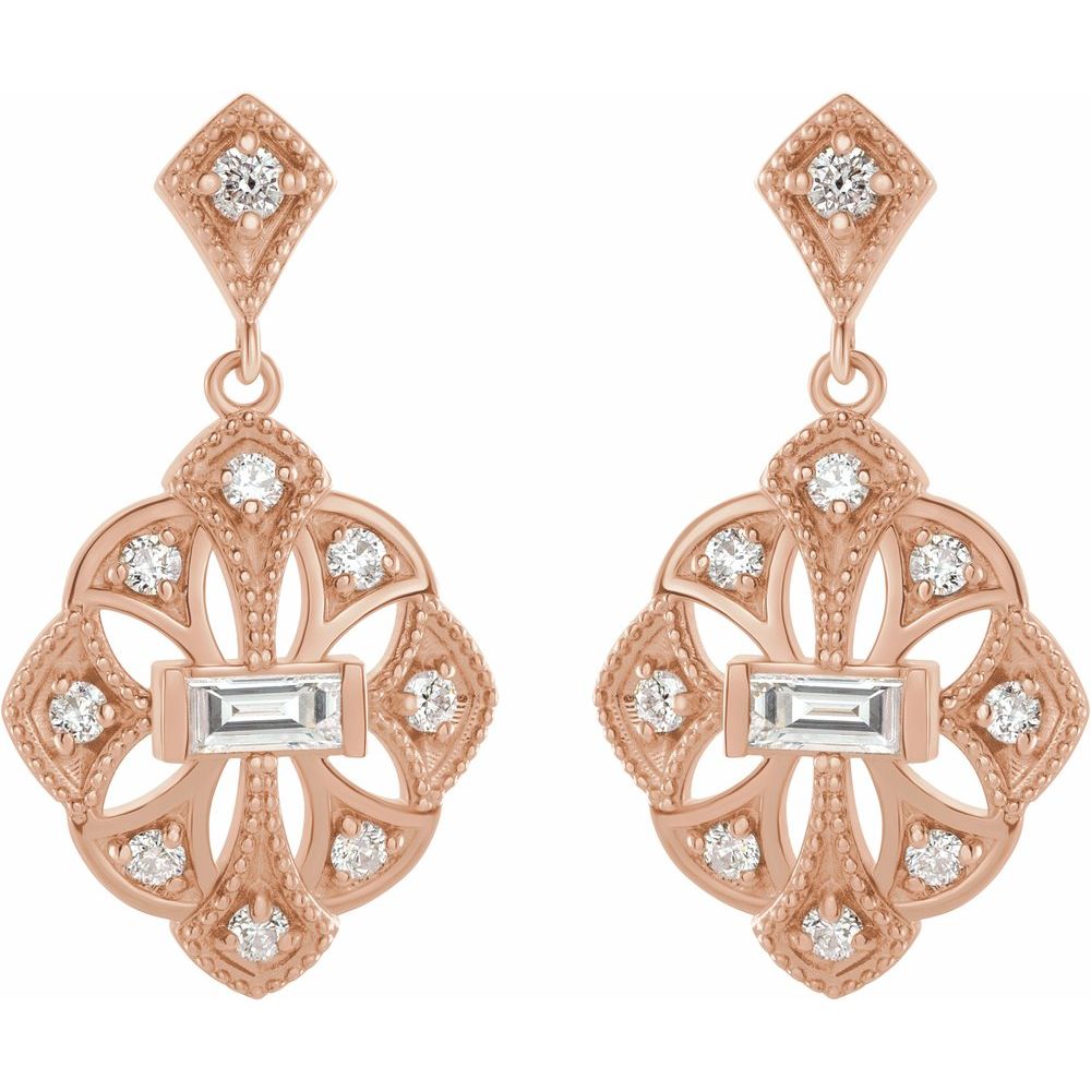 14k Rose Gold Diamond Vintage-Inspired Drop Dangle Earrings (3/8 cttw, G-I, SI2-SI3)