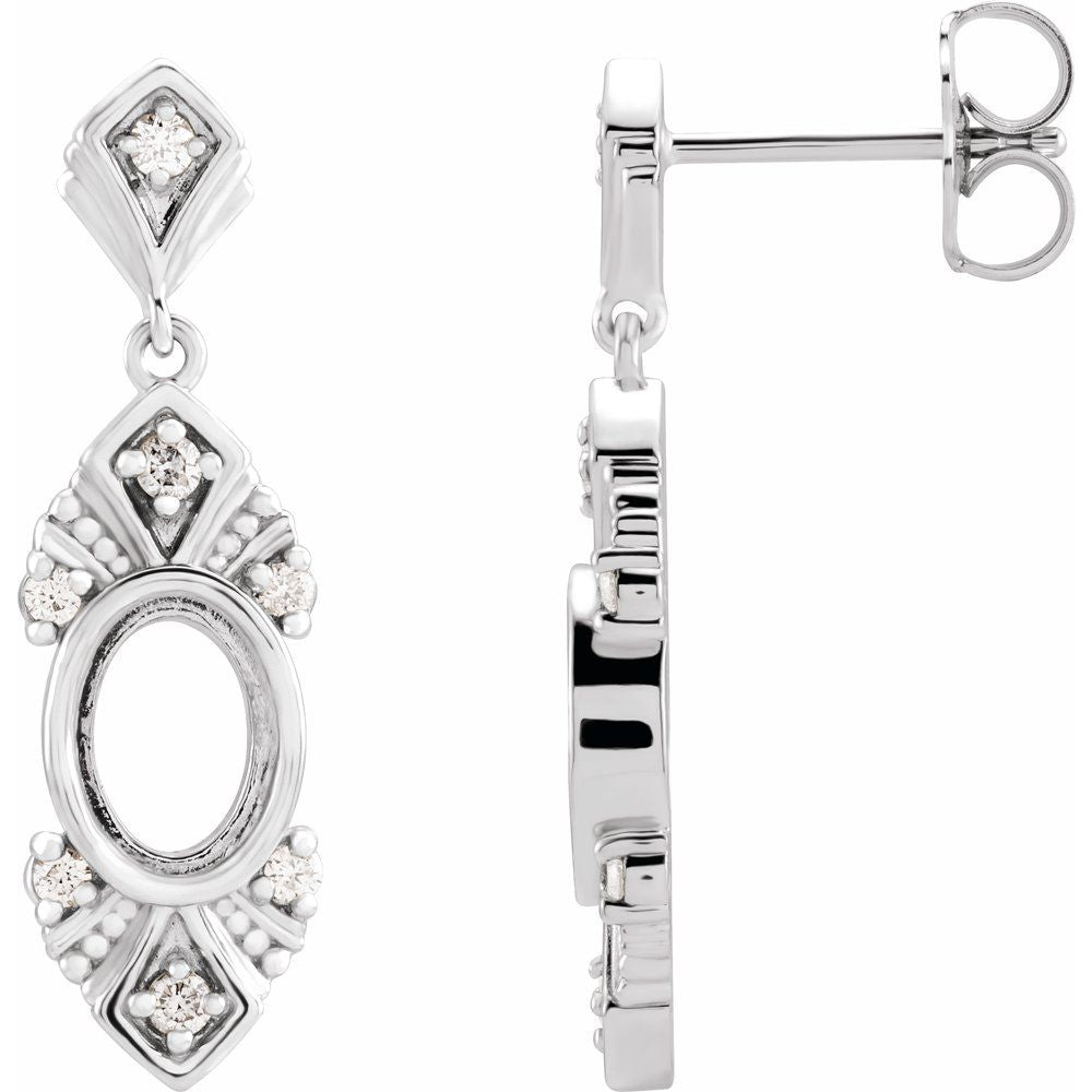 Platinum 7x5mm Oval Shape Diamond Semi-Set Vintage-Inspired Drop Dangle Earrings Mounting (Mounting Only, Not All Stones Included, 1/6 cttw, G-H, SI2-SI3)