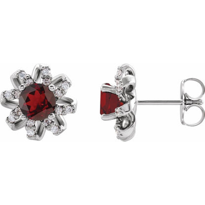 Description: Mozambique Garnet Earrings With Diamond Accents