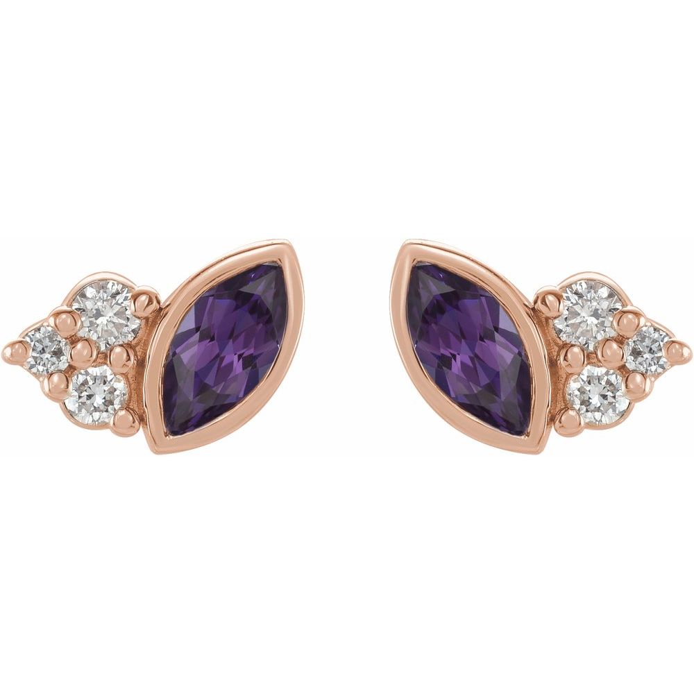 14k Rose Gold Lab-Grown Alexandrite and 0.05 cttw Diamond Stud Earrings (G-H, I1)