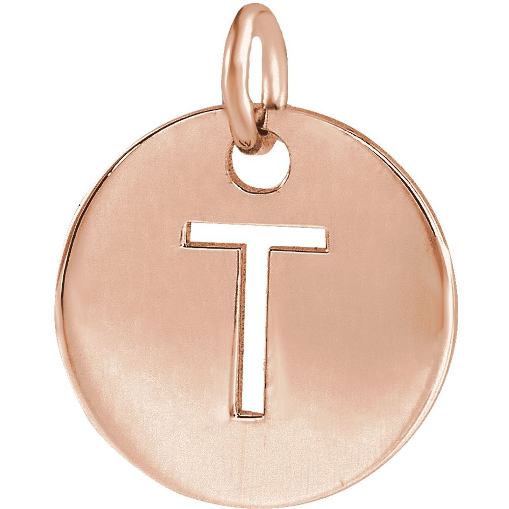 Description: 14k Rose Gold Initial T 10mm Disc Pendant