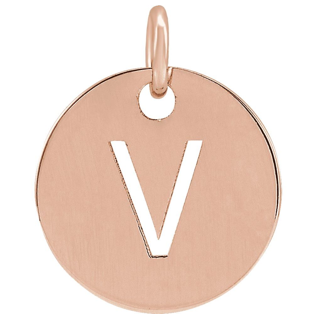 Description: 14k Rose Gold Initial V 10mm Disc Pendant