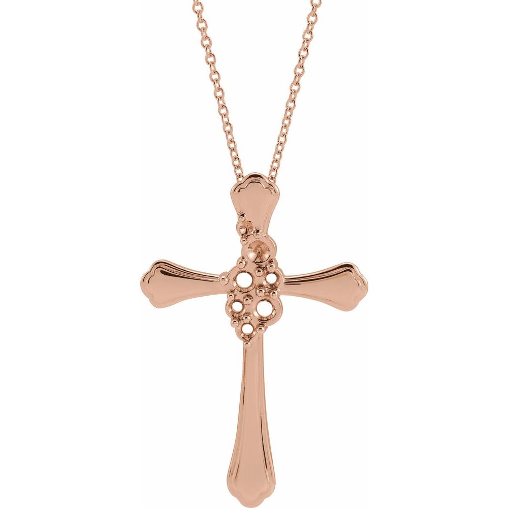 Description: 14k Rose Gold 3-Stone Family Cross 16-18" Necklace Mounting