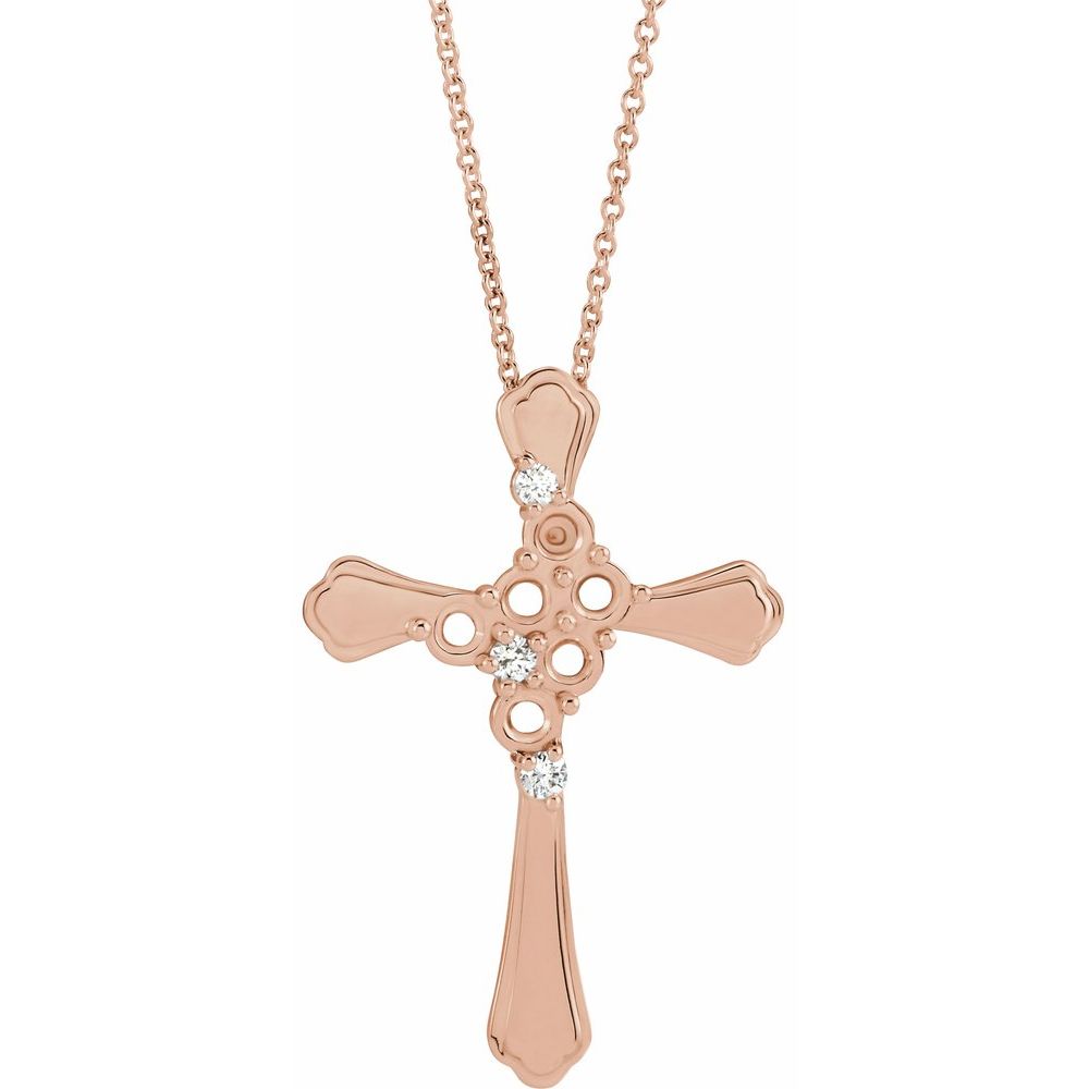 Description: 14k Rose Gold 6-stone .08 cttw Diamond Semi-Set Family Cross 16-18" Necklace
