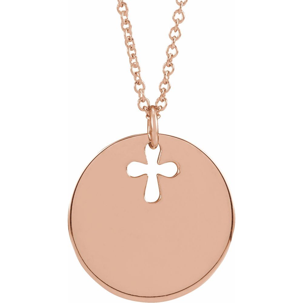 14k Rose Gold Pierced Cross Disc Religious Necklace, 16-18"